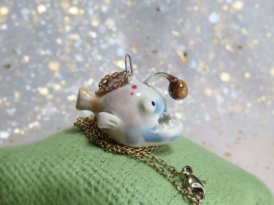 Ceramic Anglerfish Pendants. Deep sea fish. Angler Fish Charms. Marine Ocean Gift. Handmade Miniature Ceramic. Beautiful Miniature Collectibles