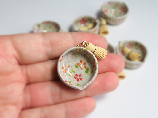 Ceramic Matcha Bowl Pendants. Green Tea Jewellery. Matcha Bowl Charms. Gift for Matcha Fan. Beautiful Miniature Collectibles