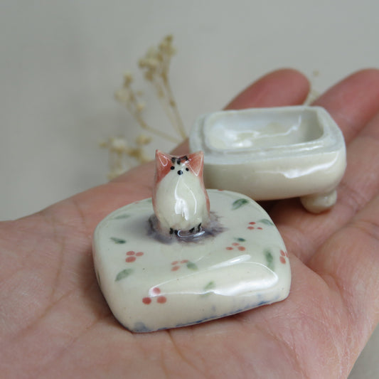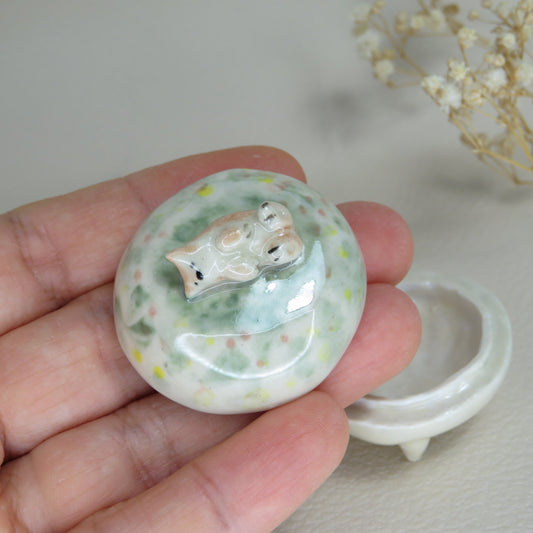 Handmade Pottery Jewelry Box. Tiny Cat 2. Beautiful Collectibles. Handbuilt Pottery. Special Gift.