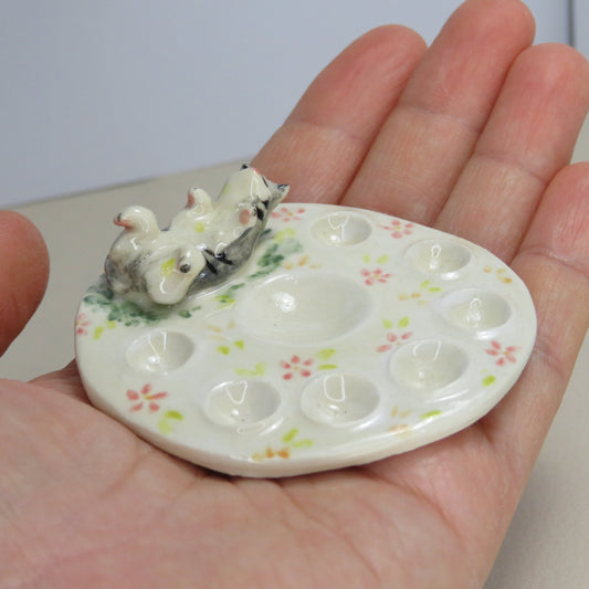 Ceramic Paint Palette. Little Cat on Leaf. Handmade Paint Dish. Beautiful Collectibles. Special Gift for Artists.