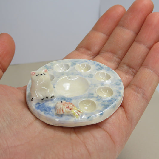 Ceramic Paint Palette. Kitty on A Ball Of Yarn. Handmade Paint Dish. Beautiful Collectibles. Special Gift for Artists
