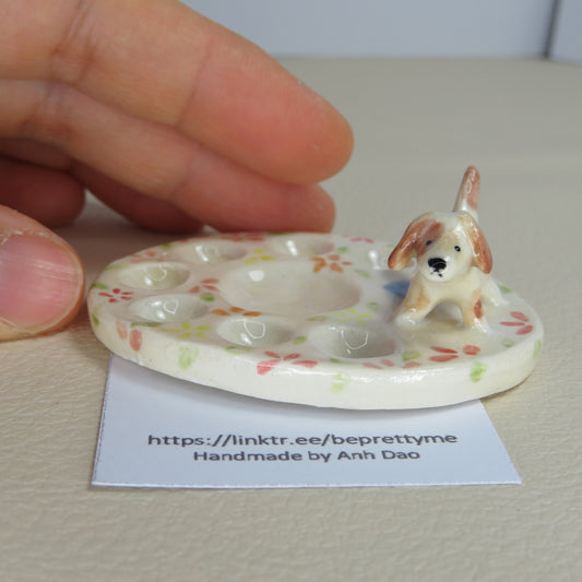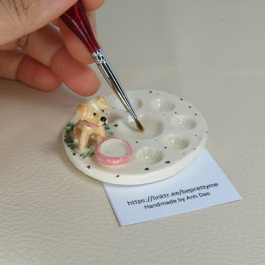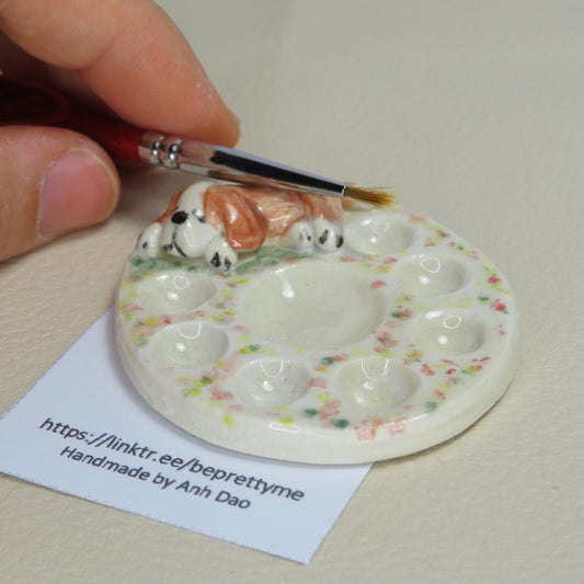 Ceramic Paint Palette. Puppy Waiting For A Treat. Handmade Paint Dish. Beautiful Collectibles. Special Gift for Artists