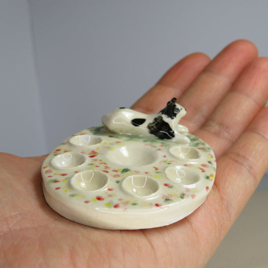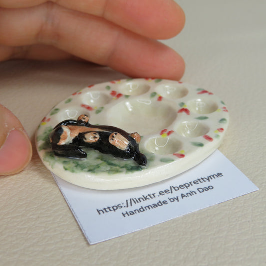 Handmade Pottery Paint Palette. Sleepy Dachshund on Grass. Ceramic Paint Dish. Beautiful Collectibles. Handbuilt Pottery. Special Gift.