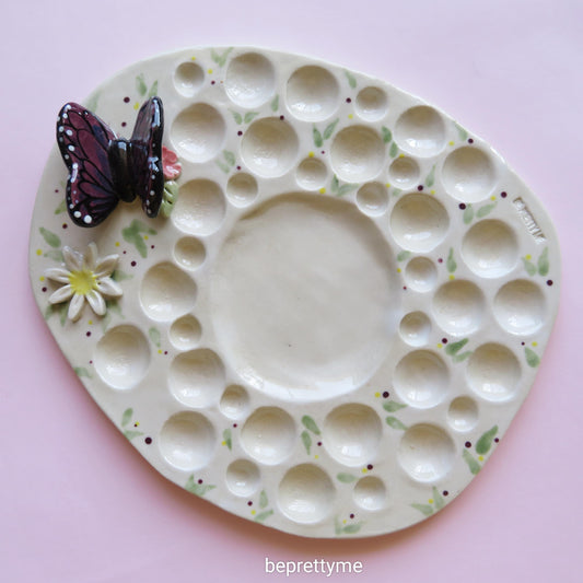 Handmade Pottery Paint Palette. Butterfly Brush Rest. Ceramic Paint Dish. Beautiful Collectibles. Handbuilt Pottery. Special Gift.