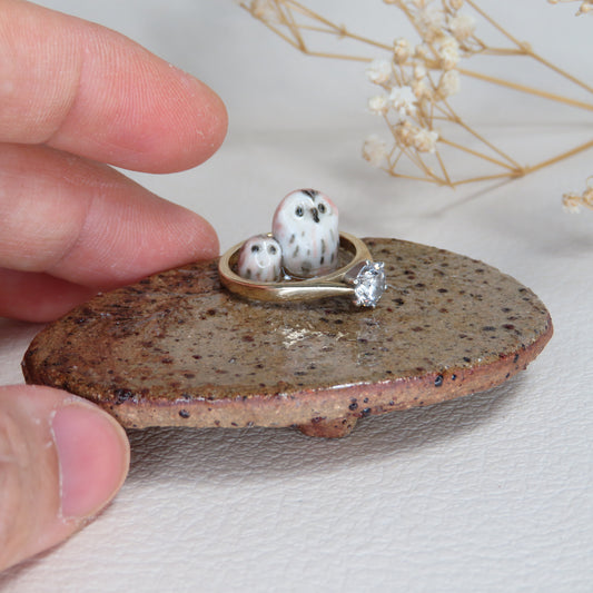 Handmade Pottery Trinket Dish. Mum and Baby Owl in Winter Forest. Jewelry Dish. Beautiful Collectibles. Hand built Pottery. Special Gift.