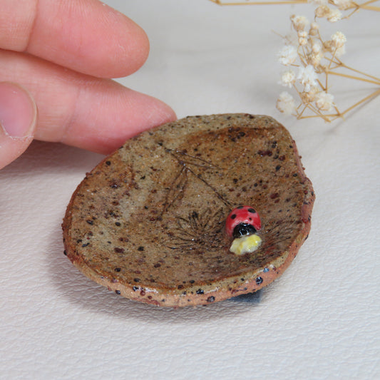 Handmade Pottery Trinket Dish. Labybug on Bloom. Jewelry Dish. Beautiful Collectibles. Handbuilt Pottery. Special Gift.