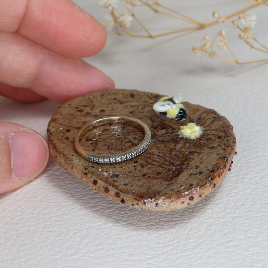 Handmade Pottery Trinket Dish. Cute Bee on Bloom. Jewelry Dish. Beautiful Collectibles. Hand built Pottery. Special Gift.