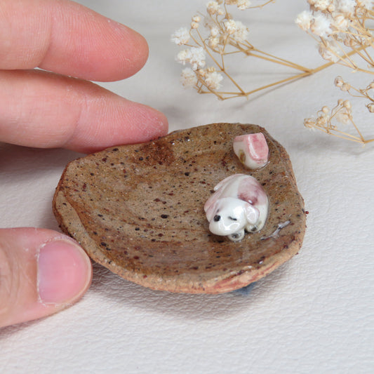 Handmade Pottery Trinket Dish. Cute Puppy 3. Jewelry Dish. Beautiful Collectibles. Hand built Pottery. Special Gift.